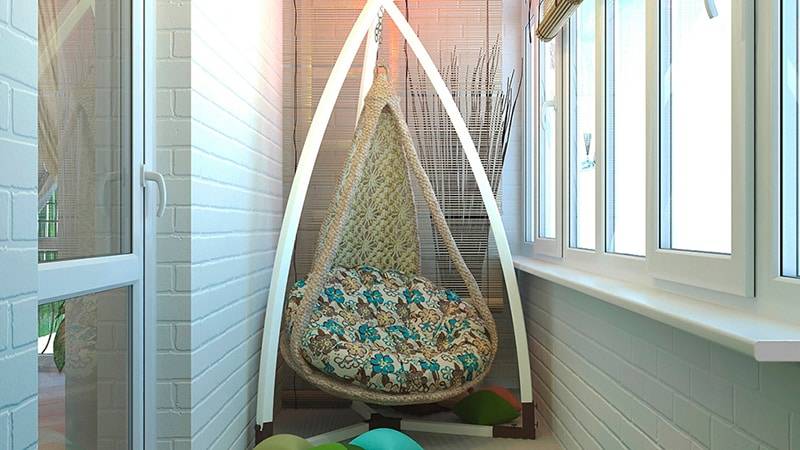 Если хочется устроить на балконе зону для отдыха, то можно предложить смонтировать откидную кровать или повесить гамак. При этом обязательно нужно предусмотреть светильник. Он придаст уют и возможность почитать в вечернее время суток. Нелишним будет повесить шторы. Жалюзи подойдут как нельзя кстати — удобно, функционально и стильно.