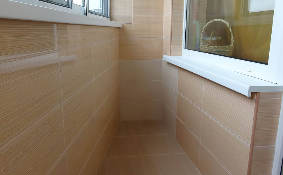 Популярная отделка вагонкой балконов и лоджий уходит в прошлое. На данный момент очень модным является интерьер с облицовкой плиткой. При этом пол выкладывается керамогранитом, а стены с идентичным рисунком кафелем. Выбор рисунка керамогранитных плиток настолько разнообразен, что позволяет даже подобрать варианты, имитирующие природный камень или экзотическое дерево.
