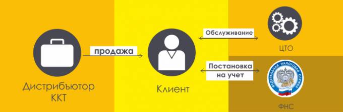 Сроки уточнили, пришла пора поговорить об изменениях в 54-ФЗ. В ближайшем будущем государство планирует изменить действующую схему взаимодействия клиентов с органами налоговой инспекции и ЦТО. Ранее всё это происходило по следующему сценарию. Магазин, желающий установить у себя новую ККТ, должен был приобрести её у дистрибьютора подобного приспособления, после чего заключить договор относительно обслуживания новых касс в ЦТО, и стать на учёт в налоговых органах.