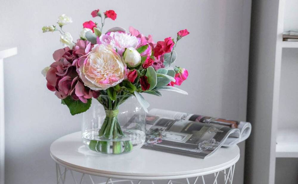В случае не очень большой ширины коридора достаточно разместить у входа маленькую вазочку с элегантным букетом.