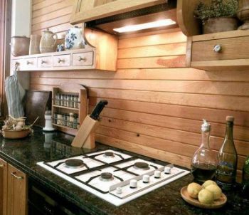- Отделка стен кухни деревом актуальна и сейчас. Можно подобрать такие деревянные изделия для отделки стен, которые придадут кухне неповторимый шик и красоту. После отделки стен деревом, его покрывают лаком, лучше это сделать два раза, тогда дерево не будет бояться влаги.