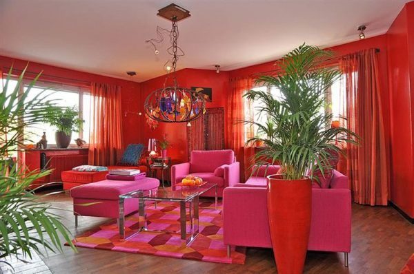 Красные шторы не менее актуальны. В чистом виде данный цвет практически не используется, так как он в некоторой степени действует на психику и визуально уменьшает пространство. Часто применяются теплые тона красного – карминный, кирпичный. С помощью этих штор можно существенно преобразить помещение, подчеркнув особое великолепие мебели, выполненной из качественного натурального дерева.