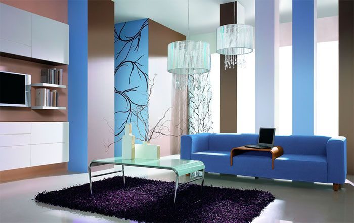 - Синий будет смотреться по-настоящему глубоко в особом сочетании с розовым, желтым, оранжевым и песочным.