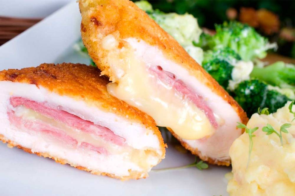 К этому гарниру можно подать легкое мясное блюдо – куриное филе, фаршированное «пармской» ветчиной и сыром «камамбер» (французский мягкий сыр с белой плесенью). Эти продукты сейчас не дефицит, их можно купить в любом супермаркете. Итак, на две порции вам понадобятся 2 кусочка куриного филе, по 100 граммов ветчины и сыра, помидор. В курином филе необходимо сделать надрез так, чтобы образовался кармашек, положить туда измельченные ветчину, сыр и помидоры. Начиненное филе обжарить на сковородке (можно на специальной сковородке-гриль). После этого его нужно завернуть в пергаментную бумагу (бумагу перед использованием намочить), затем – в фольгу. Запекать филе в духовке 10 минут при температуре 180 градусов.