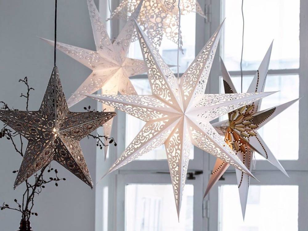 Особенно популярным украшением на Новый год являются бумажные звезды, которые складываются, вырезаются и склеиваются. Ими можно украсить не только елку. Они также отлично смотрятся на стенах или окнах и при этом делаются за считанные минуты!