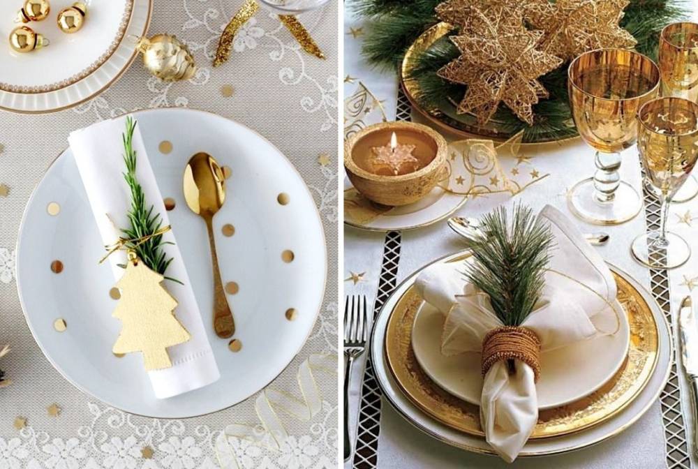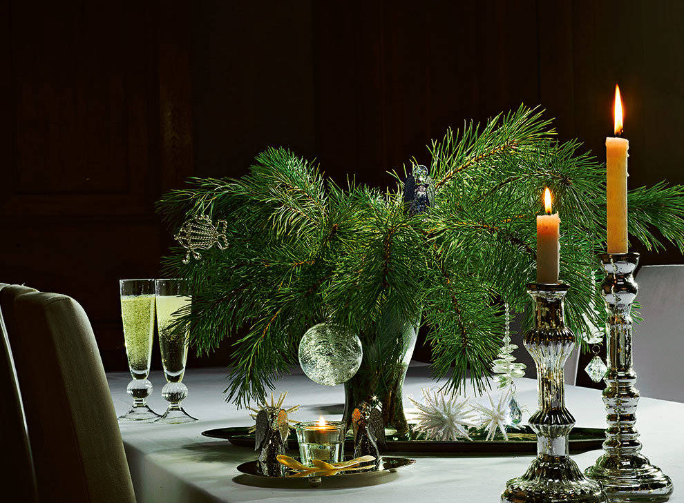 Для украшения стола сегодня есть много прекрасных идей, будь то на каждый день, для семейного ужина в выходные дни или на новогодние праздники. Используя атмосферное освещение со свечами, с красивой керамикой, благородным столовым бельем и декоративными элементами от фарфорового ангела до золотой сосновой шишки вы в мгновение ока создадите праздничное настроение на новогоднем столе.